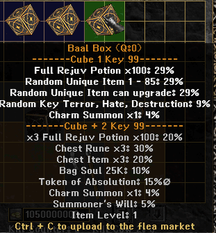 - Se agregaron 62 elementos C2 que se pueden convertir con Refined Ember + 1 Cham Rune + 6 Writ of Salvation.