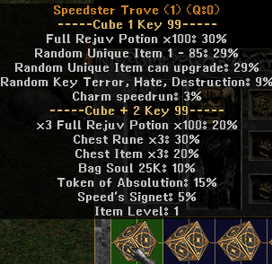 - Nuevo elemento: Sello de velocidad: permite actualizar Charm speedrun a Charm speedrun God Upgraded
