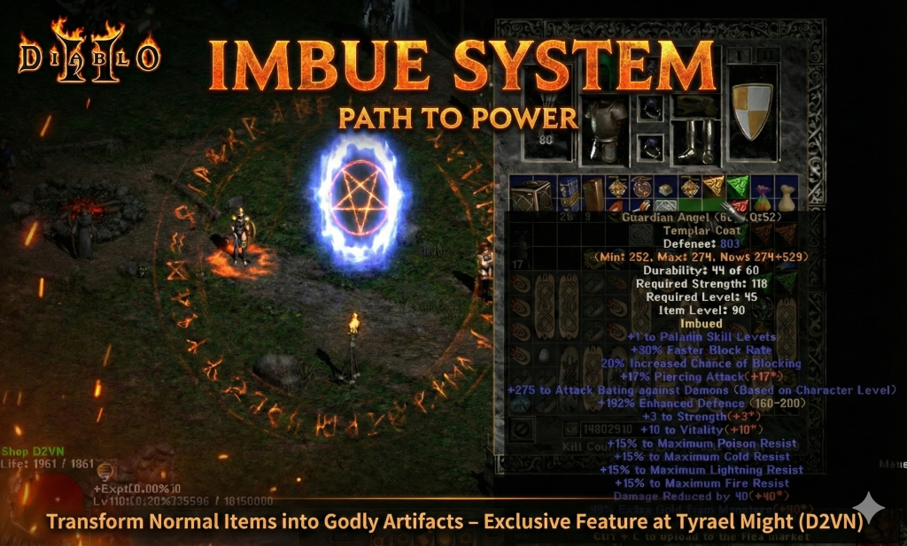 Chào mừng các chiến binh đến với thế giới D2VN Season 24! Bạn đang tìm cách gia tăng sức mạnh để chinh phục những Boss End-Game siêu khủng? Hệ thống Imbue (Cường Hóa) chính là câu trả lời. Đây là tính năng đặc sắc nhất tại D2VN, cho phép bạn tự tay chế tạo nên những món trang bị “Godly” với các dòng chỉ số phá vỡ mọi giới hạn thông thường. Bài viết này sẽ hướng dẫn bạn từ A-Z quy trình Imbue, cách săn nguyên liệu Soul hiệu quả và bí quyết để sở hữu những món đồ mơ ước.